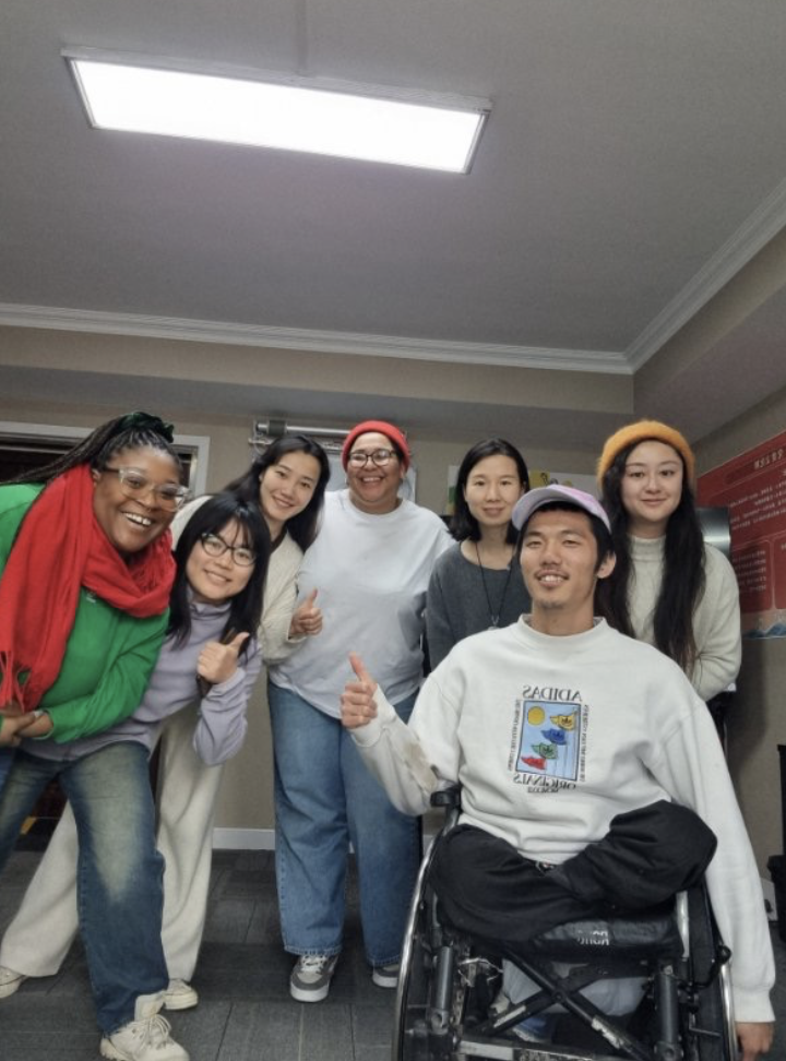 We headed over to meet Liyun Chen, Manager of Inclusive Space, a vital community resource in the Chaoyang district. Formed in 2017 as a social work office, Inclusive Space has evolved into a certified arts NGO providing an accessible and inclusive space supporting many, many gorgeous projects; from disabled women’s summer groups, to collaborations with Oxfam for Blind Hikers, and even crafting a braille library. In recent years their Pleasure Troupe; a close knit and 25+ strong group of disabled and able bodied players have used contemporary theatre to shine a light on the experiences of a wide range of disabilities, chronic illnesses and neurodivergence via touring performances to the Beijing Fringe, Hong Kong and for the United Nations. Here we met Huanhuan (meaning Happy Cloud) a disabled performer, adoptee and member of the troupe… and a hardcore Charlie Puth stan.