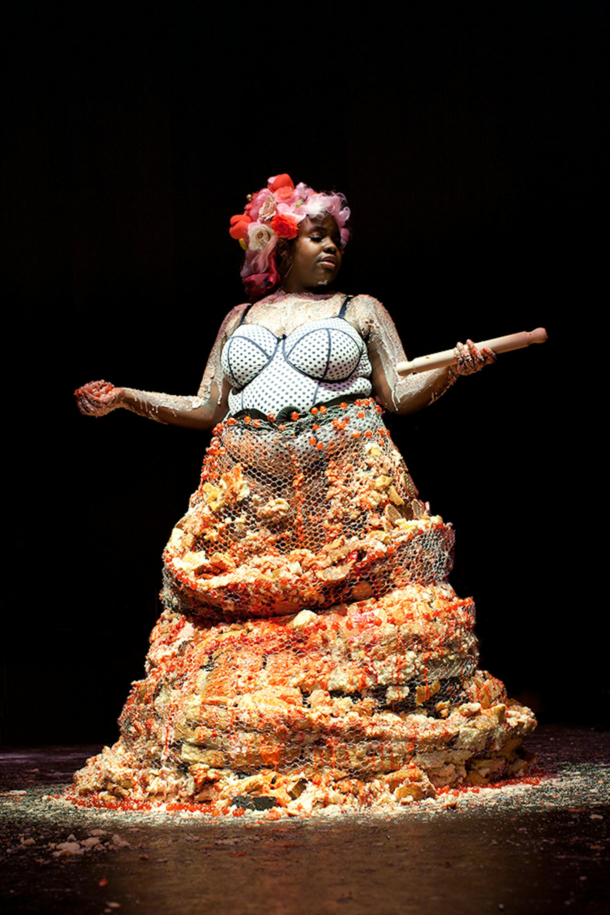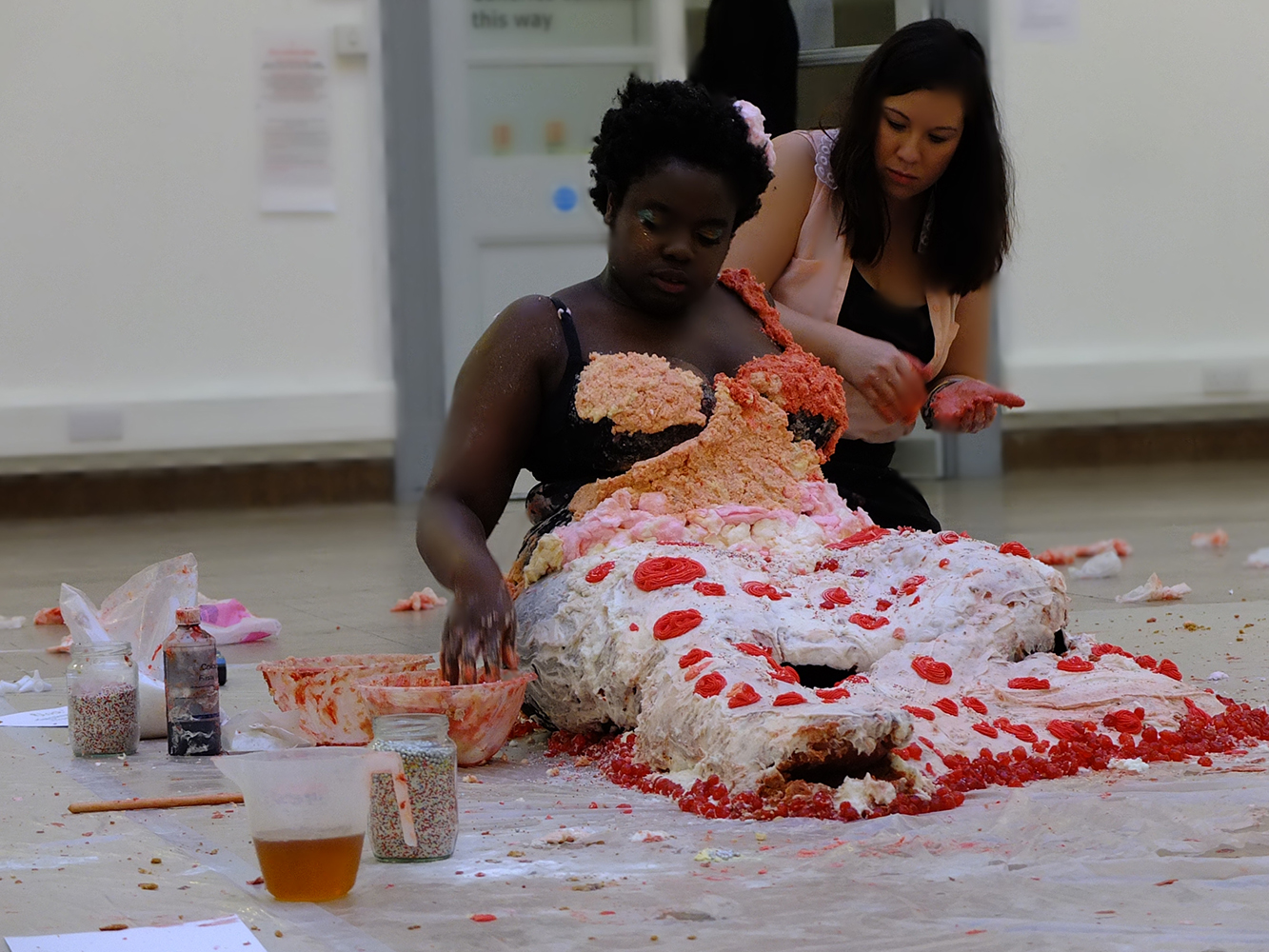 The durational performance where we build a cake dress.